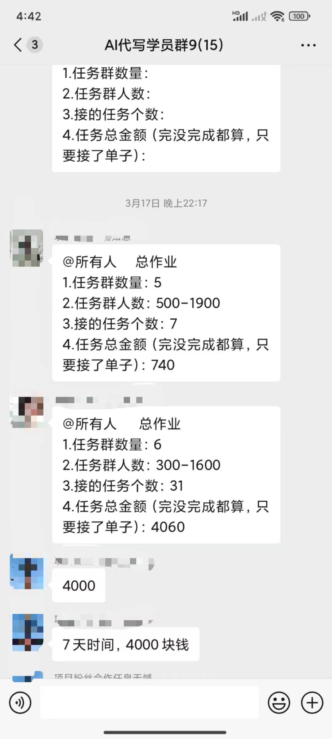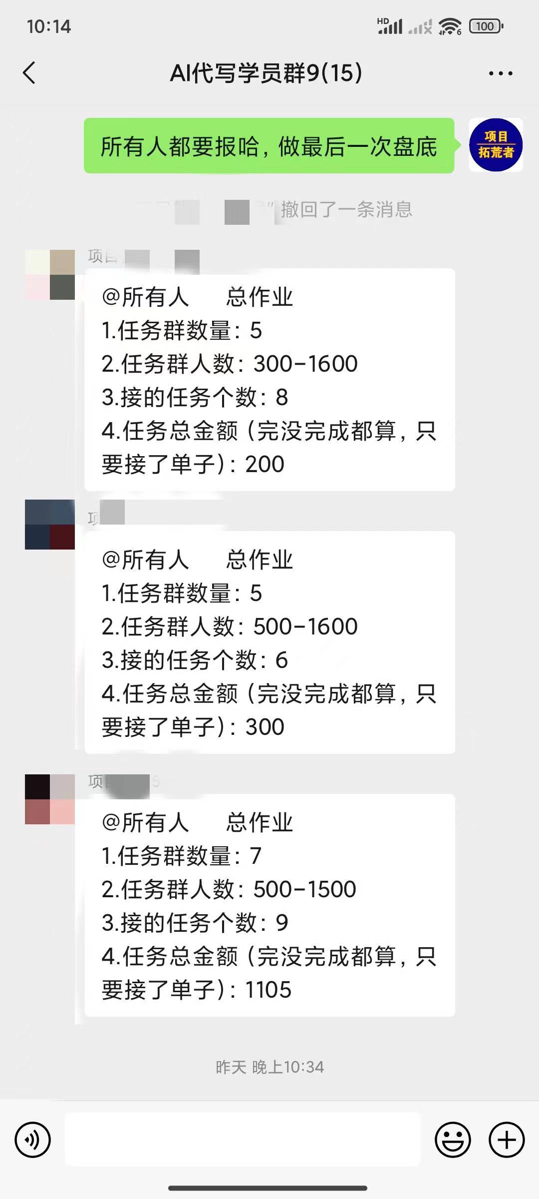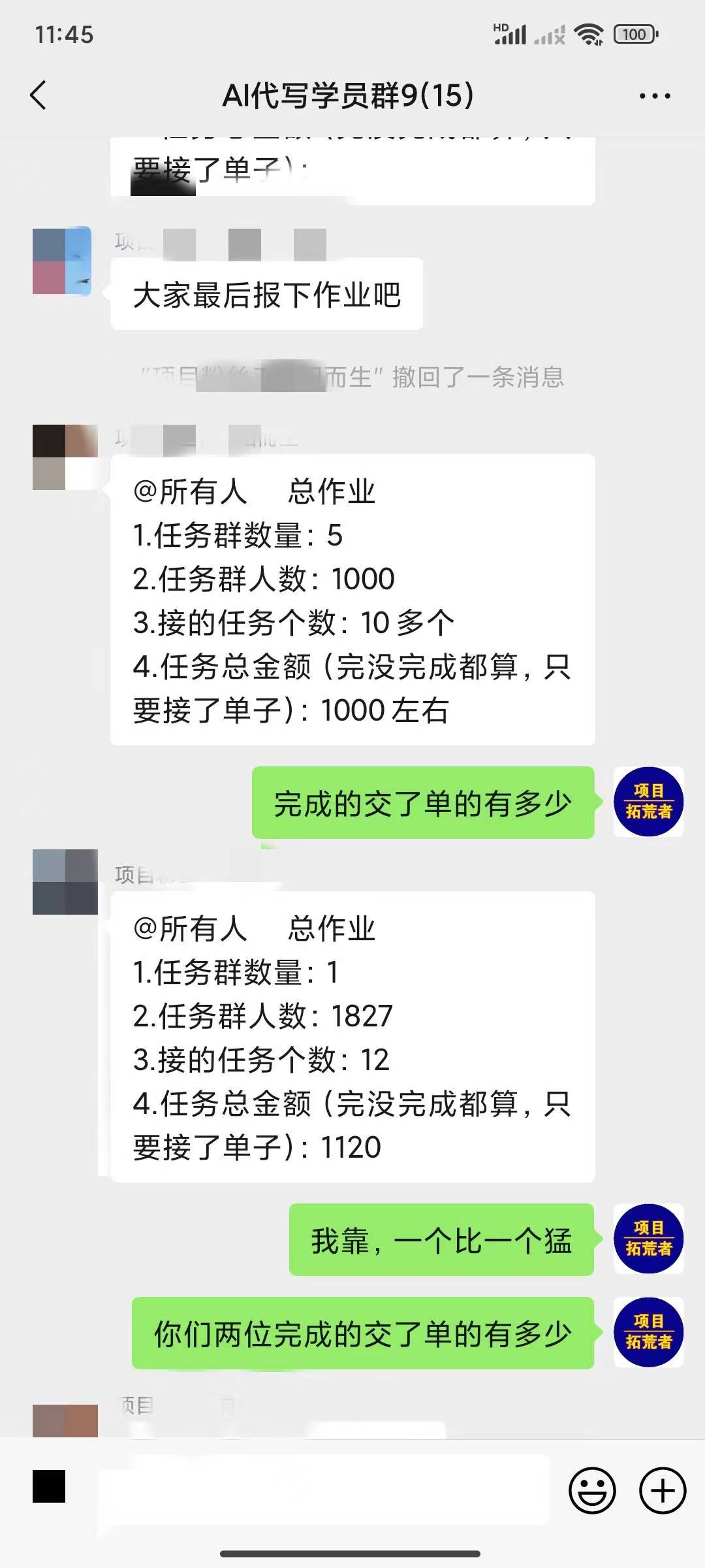 渠道任务群接代写单子,用AI生成做单,人人可做,AI什么都懂,老师陪跑,用什么AI工具(免费GPT、讯飞、智谱清言、Kimi等等),怎么做,单子AI生成技巧等,不用愁单子,会教学员找很多的渠道群接单子,渠道群任务每天都有很多单子可接,不用担心单子问题,不怕接不到任务,接任务无上限,每天花费几个小时,轻松一两百,主要就是上限高,每个单子单价在几十到几百不等,老师全程陪跑做任务。最实际简单直观的赚钱项目。己落地交付17批学员,新人基本2-5天学费就回来了,快的次日就回。代写本身是一个行业,所以直接变现永久长期项目,业余时间想做就做想赚就赚的项目,今天学明天赚钱变现。详细情况看以往我的朋友圈记录,机不可失,失不再来。